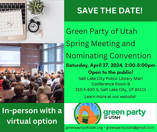 Join the Movement! To learn how to get involved with the GPUT and to help build the GPUT Disability Caucus, visit the website: greenpartyofutah.org or ontact the GPUT ADA Coordinator, Adam Guymon at adacoordinatorgput@gmail.com.
